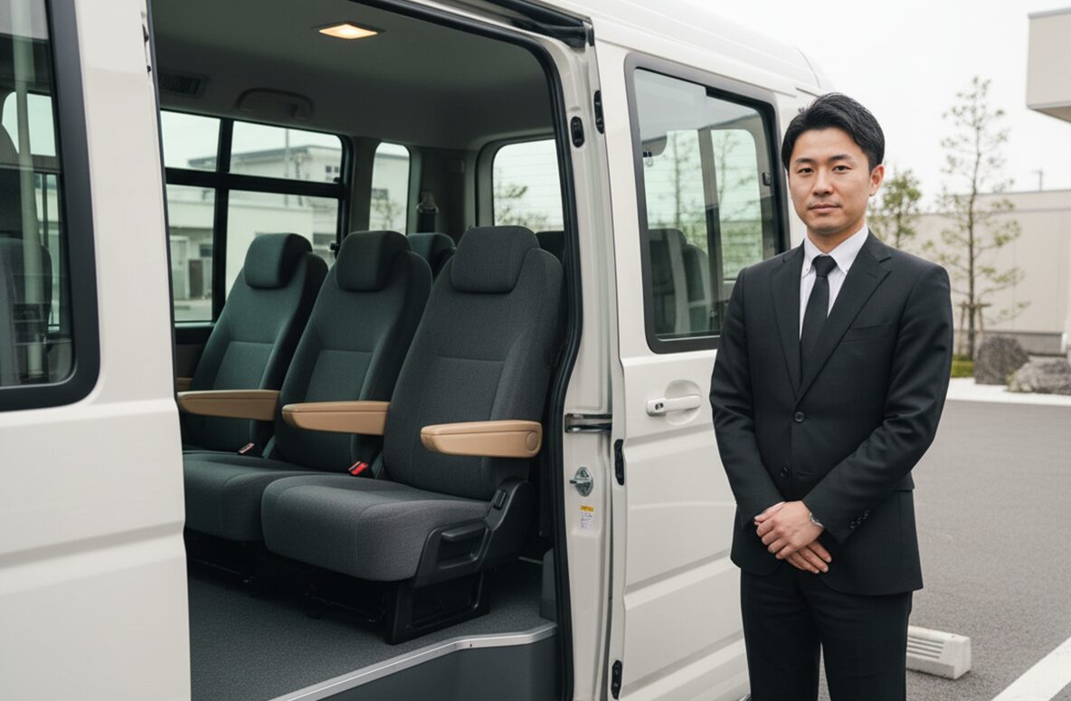 (中型2種免許保持者の場合)ご親族を乗せ、会場から斎場、または斎場からお食事会場への送迎を行います。